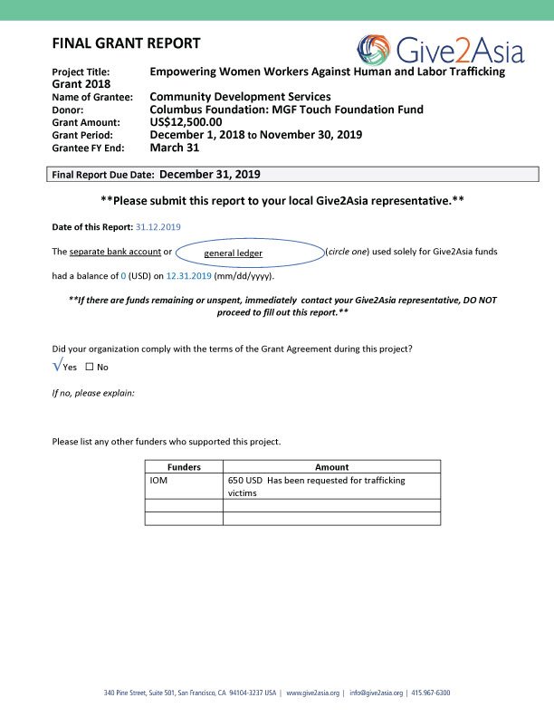 PROJECT CLOSURE REPORTS SOLIDARITY CENTER TRAFFICKING PROJECT VIEW IOM SCOUT REPORT VIEW GIVE2ASIA REPORT VIEW MHS (MARITIME HUMAN SMUGGLING) ROUND 2 REPORT VIEW DITWAH REPORT VIEW
